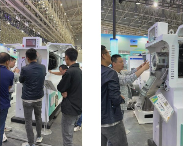 華豫萬通此次展出了HRP40智能柔性大米搓光機、YHT700智能大豆脫皮破瓣機、HTY智能葵花籽脫殼機、冰冷式纖維微粉機等創新產品亮相展會,并圍繞糧機創新技術和數智化工程等新質生產力與看展客商探討交流,以技術實力促進糧食加工企業轉型升級。