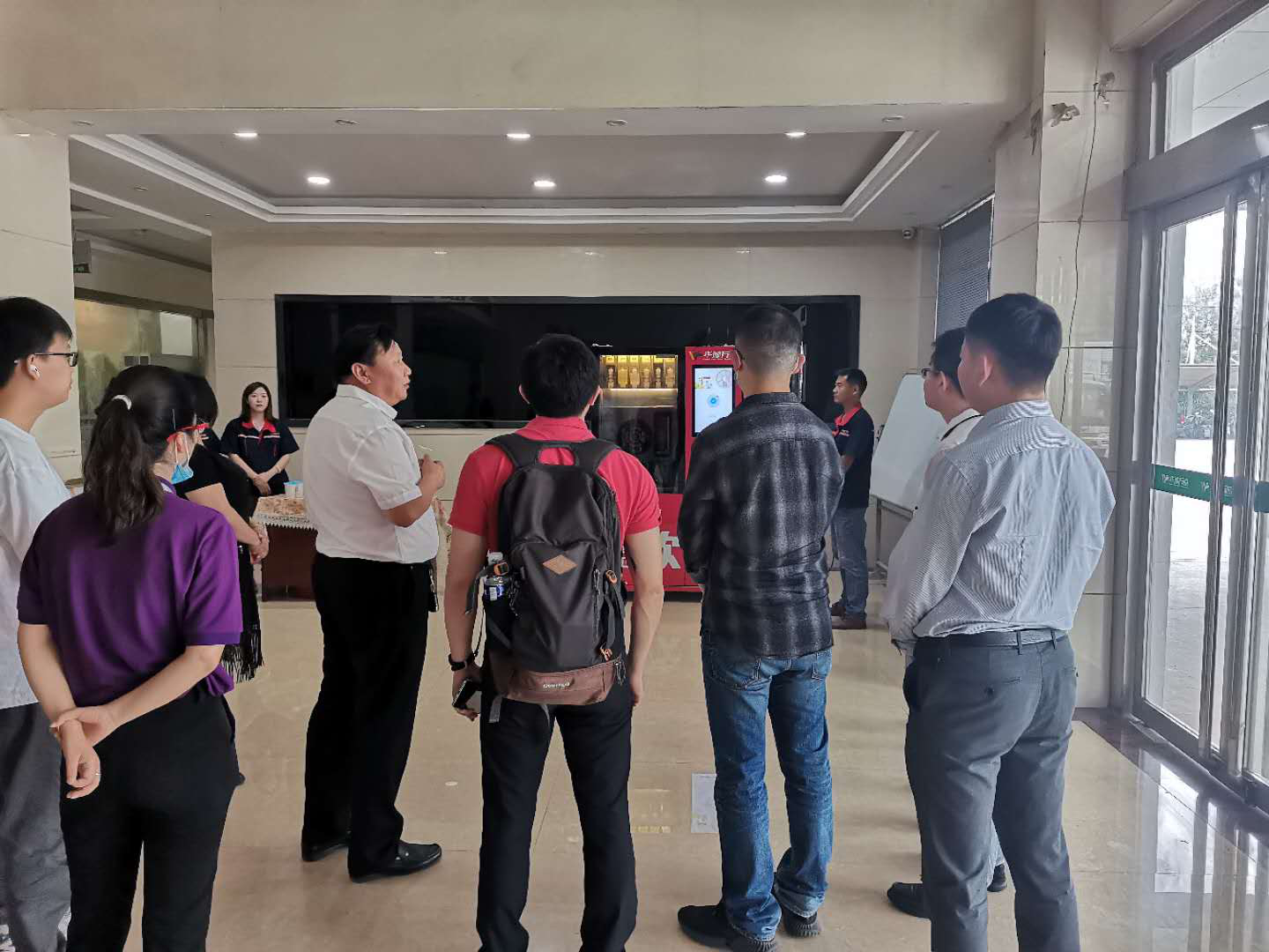 沈董在公司辦公樓一樓大廳,同清研基地團隊成員進行了分享與溝通。并就公司的重要項目—— 五谷養生鮮湯智能售賣機的制作原理、生產工藝、市場應用等方面進行了詳細的講解,團隊成員不時就五谷養生鮮湯智能售賣機的有關問題提出自己的建議。營銷中心的員工現場操作五谷養生鮮湯智能售賣機的制作過程,并送予每位清研團隊嘉賓品嘗,清研團隊就五谷養生鮮湯智能售賣機的設計原理及工藝提高同沈董深入交換意見。隨后,清研團隊到公司的展廳參觀,了解公司的主要產品和公司發展歷史,并到裝配車間查看五谷養生鮮湯智能售賣機的組裝和生產情況。