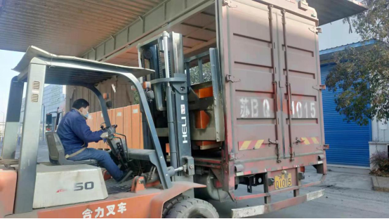1月13日8點剛上班,一輛40 尺高柜貨車停放在了華豫萬通的生產(chǎn)區(qū)。出口贊比亞代理商的50臺玉米脫皮機,準備裝柜發(fā)貨。