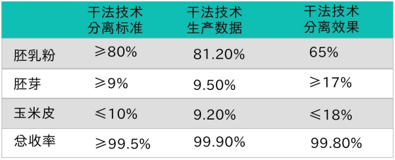 隨著設(shè)備創(chuàng)新和光電自控水平的提高,通過先進(jìn)的工藝過程,成功高效分離出脫脂玉米粉、胚芽、玉米皮,分離效果好于濕法;